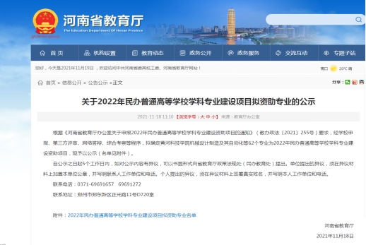2021年11月18日,河南省教育廳官網(wǎng)(jyt.henan.gov.cn)公示,9001cc金沙現(xiàn)代物流管理專業(yè)和大數(shù)據(jù)與財(cái)務(wù)管理專業(yè)同黃河科技學(xué)院、鄭州升達(dá)經(jīng)貿(mào)管理學(xué)院和鄭州商學(xué)院等21個(gè)學(xué)校62個(gè)專業(yè)擬確定為2022年民辦普通高等學(xué)校學(xué)科專業(yè)建設(shè)資助項(xiàng)目。