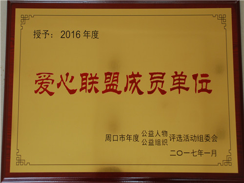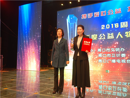 2月9日上午,由周口市文明辦、市紅十字會(huì)、市衛(wèi)計(jì)委、周口廣播電視臺(tái)共同舉辦的2016年度公益人物頒獎(jiǎng)儀式舉行。我院理事長(zhǎng)李海燕當(dāng)選為周口市愛(ài)心公益大使,我院獲我院獲2016年度愛(ài)心聯(lián)盟成員單位。