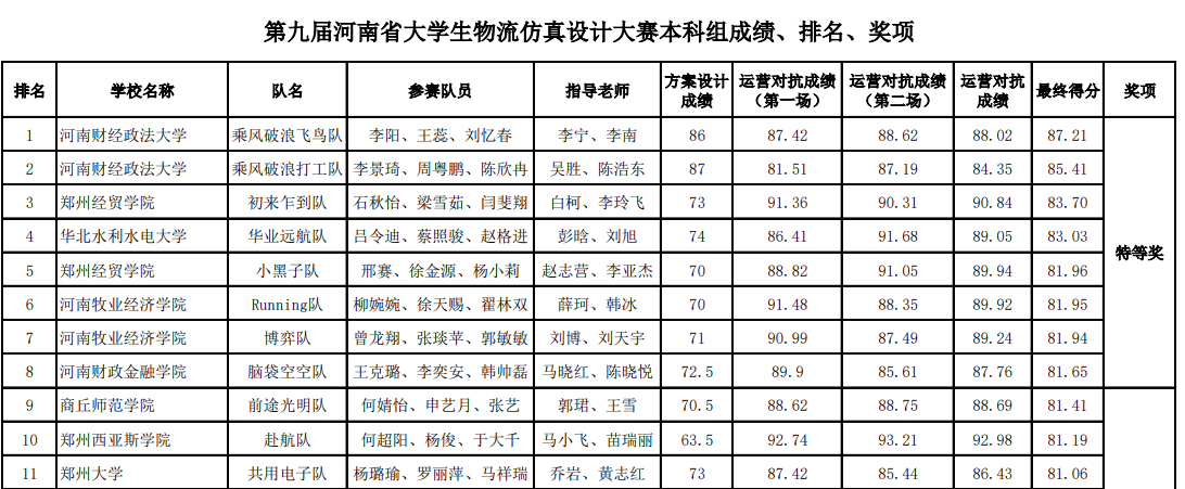 近日,由河南省物流協(xié)會主辦的第九屆河南省大學生物流仿真設(shè)計大賽暨“百蝶杯”第八屆全國大學生物流仿真設(shè)計大賽河南省選拔賽圓滿結(jié)束。9001cc金沙本科組、高職高專組雙雙獲獎。其中,高職高專組獲得特等獎并入圍國賽、本科組獲得一等獎,取得近年參加此項賽事以來我校最佳成績。