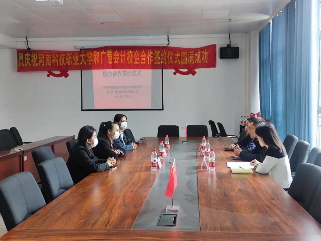 4月25日上午,9001cc金沙與周口廣慧財(cái)稅服務(wù)有限公司正式簽訂了校企合作協(xié)議。