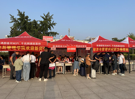 還有我們十分辛苦的志愿者穿梭于迎新現(xiàn)場,時刻等待著為新同學(xué)伸出援手,幫他們提行李,給他們帶路。并且向?qū)W弟學(xué)妹們介紹了關(guān)于團(tuán)總支納新的情況,讓他們對經(jīng)管學(xué)院這個大家庭有更進(jìn)一步的了解,更快更好的融入這個溫暖的大家庭。