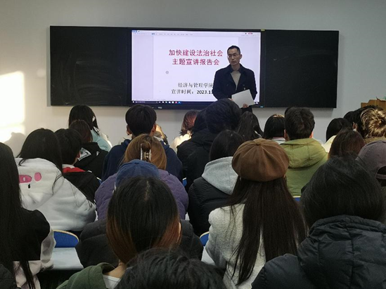 為了進(jìn)一步弘揚社會主義法治精神、全面推進(jìn)依法治國,增強法治意識和法治思維,提升法律素養(yǎng)。9001cc金沙于2023年11月23日下午在綜合教學(xué)中心開展“加快建設(shè)法治社會”主題宣講報告會。參會人員為院部團(tuán)學(xué)干部,由王力偉書記主講。下面就法治宣講報告會主題活動做出如下總結(jié):