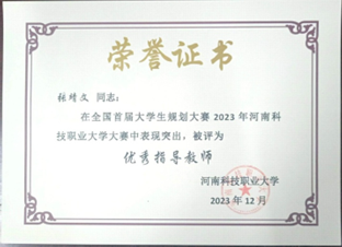 比賽獲獎不僅是對獲獎選手們的支持和鼓勵,更是對獲獎選手身后的指導老師的肯定。在本次大賽中,我院劉晶晶、張靖文兩位老師被評為“優(yōu)秀指導教師”。