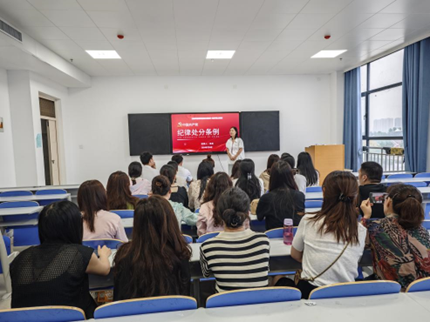 為深入學(xué)習(xí)貫徹習(xí)近平新時(shí)代中國特色社會主義思想及黨的基本路線,加強(qiáng)黨員教職工的黨性修養(yǎng)和理論素養(yǎng),在學(xué)校黨委的堅(jiān)強(qiáng)領(lǐng)導(dǎo)下,根據(jù)9001cc金沙黨紀(jì)學(xué)習(xí)教育方案要求,結(jié)合9001cc金沙實(shí)際,中共9001cc金沙教職工黨支部于2024年7月4日下午在學(xué)院教室組織開展了一場主題為《解讀中國共產(chǎn)黨紀(jì)律處分條例》的黨課學(xué)習(xí)活動。
