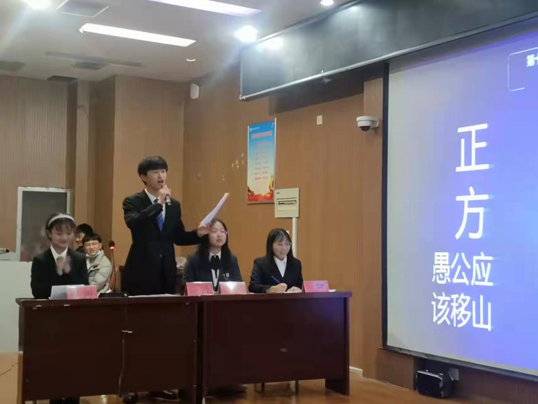 本場比賽共八組隊(duì)伍參賽:你杠就是我隊(duì)、我才隊(duì)、冰糖葫蘆隊(duì)、超能陸戰(zhàn)隊(duì)等。本場比賽共有四個(gè)主題:1.愚公應(yīng)該移山(搬家),2.現(xiàn)代社會(huì)競爭(合作)更重要,3.近墨者(未必)黑,4.不(自)以成敗論英雄。比賽一共分為六個(gè)環(huán)節(jié):1.開篇立論環(huán)節(jié),由雙方一辯各自論述本隊(duì)觀點(diǎn)。2.駁立論環(huán)節(jié),由雙方三辯各向?qū)Ψ揭?、二、四辯提問,反駁對方論點(diǎn)。3.自由辯論環(huán)節(jié),在這期間所有辯手都可以自由發(fā)言,提問對方辯手或講述本隊(duì)論點(diǎn),這一環(huán)節(jié)是這場比賽中的亮點(diǎn),場內(nèi)氛圍十分激烈。4.觀眾提問環(huán)節(jié),場內(nèi)觀眾可以任意提問雙方辯手,辯手不可以回避問題,在此期間,觀眾的犀利問題也是考察了辯手的隨機(jī)應(yīng)變能力和語言組織能力。5.攻辯小節(jié)環(huán)節(jié),由雙方四辯各自總結(jié)本隊(duì)論點(diǎn)。6.評(píng)委點(diǎn)評(píng)環(huán)節(jié),經(jīng)過學(xué)院綜合考慮,請來了高琰、閆海恒,葉志祺、侯平平、徐賀、王祥、理方園等十名老師。 她(他)們的到來,使這次復(fù)賽的更加精彩。